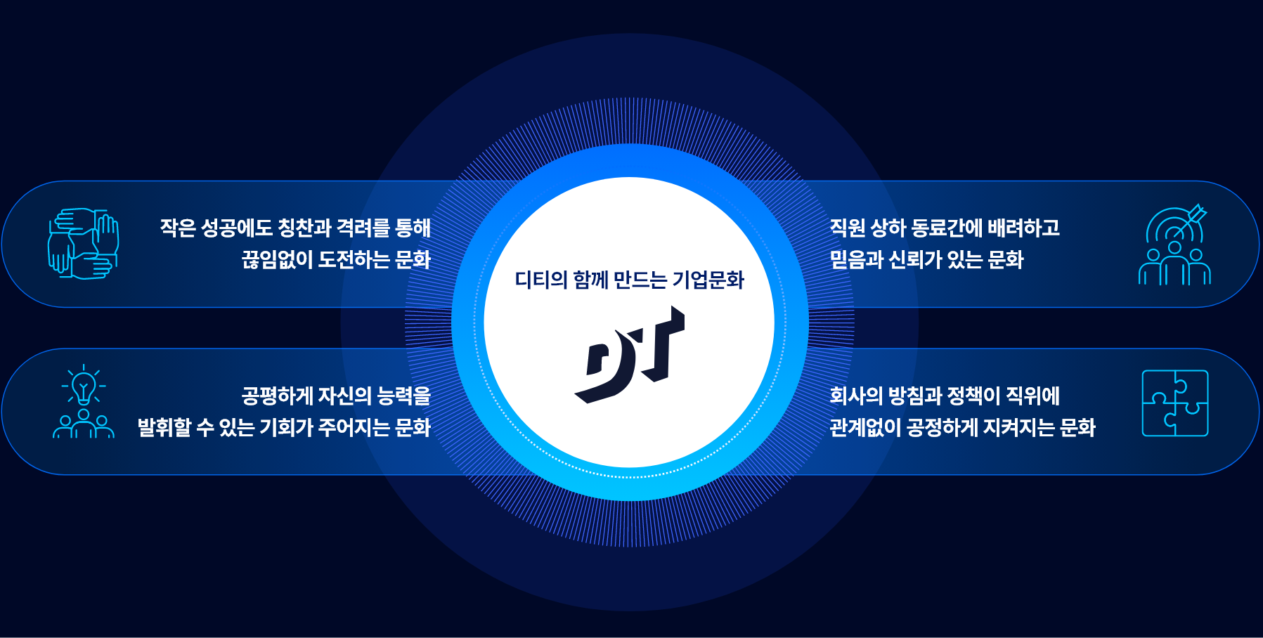 선도하고 있습니다. 나아가, 디티는 고객에게 가장 신뢰받는 ‘혁신기업’으로 자리매김하고 있으며,